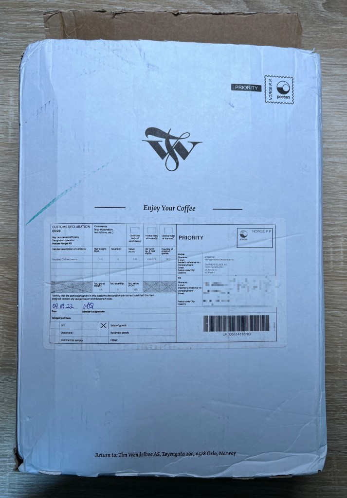 最後選擇採用挪威郵政,一來是因為運費比較便宜,第二是因為官網建議的養豆時間約一週。訂購時想說反正等一點沒關係,順便可以養豆。